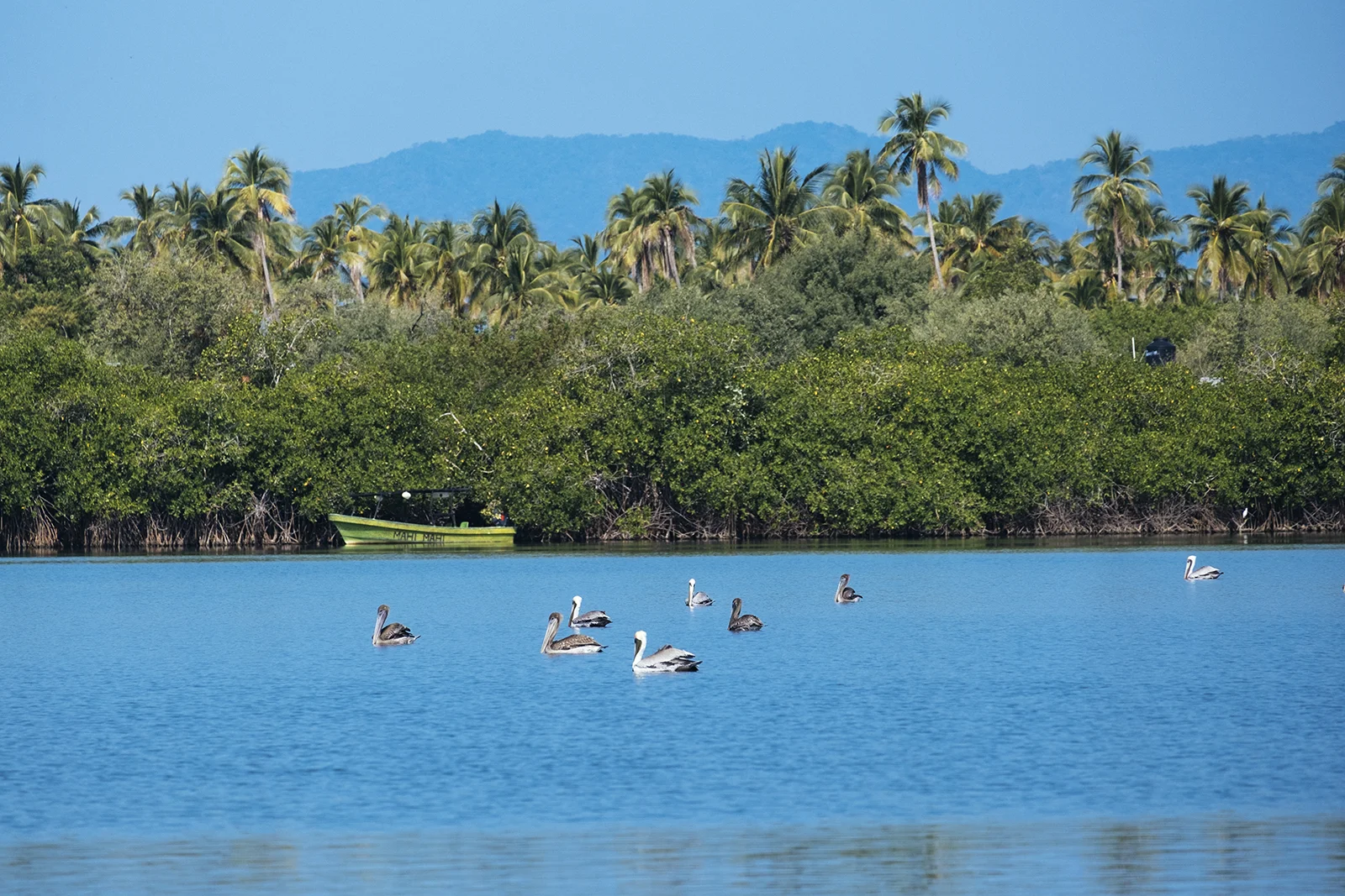 La pintoresca Barra de Potosí guarda quizás el mayor de los tesoros: sus imponentes morros, formaciones rocosas que emergen como catedrales del océano. En sus contornos cristalinos es posible nadar entre peces tropicales que parecen escapados de un acuario de ensueño, o aguardar con paciencia el espectáculo sublime de delfines y cetáceos danzando en libertad.