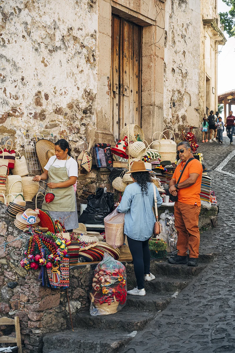 En las callejuelas del centro histórico, tiendas de artesanía como El Jumil, regentada desde 1982 por Magdaleno Flores –aquí todos le llaman Maleno– dan vida a barcas y máscaras de madera de colores vibrantes, obras que rinden homenaje tanto a las ancestrales raíces purépechas de la región como a la creatividad inagotable de los artesanos locales.