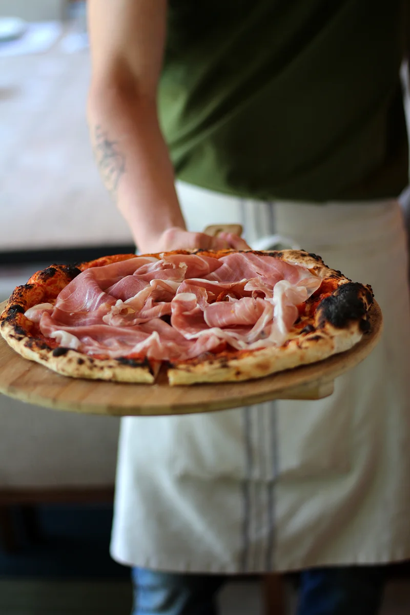 «Estamos siempre en la búsqueda de lo mejor, porque solo con materias primas de primera se puede alcanzar la pizza perfecta», añade Matteo. El resultado es una pizza que combina técnica, paciencia y tradición, y que se convierte en una de las razones por las que Bosco de Lobos se ha ganado un lugar imprescindible en la escena gastronómica madrileña.