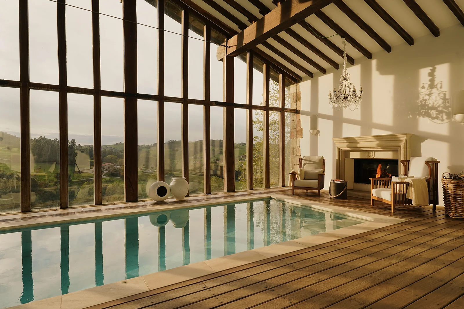 Un edén de calma y tranquilidad en el que no falta una piscina infinita con impagables vistas a los valles pasiegos. La gran ventaja es que está diseñada para disfrutarla todo el año, ya que cuenta con una zona exterior y una prolongación hacia el interior de un spa provisto también con hidromasaje, gimnasio completo, sauna y hammam. Los huéspedes que lo soliciten podrán disfrutar también de un buen masaje en cualquiera de las cabinas interiores e, incluso, al aire libre.