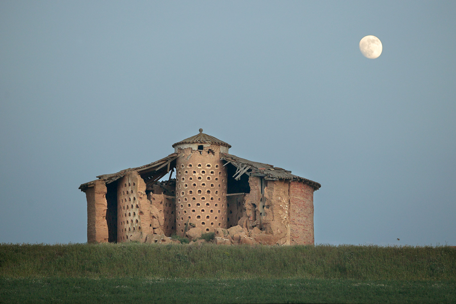 En tierras castellanas y leonesas, entre colinas suaves y campos de cereal, atravesando pinares resineros que impregnan el aire con su aroma acre y persistente, aparecen a lo lejos pequeñas construcciones coronadas por tejadillos ornamentales. Antiguos refugios de palomas, hoy resisten luna tras luna con un horizonte incierto.