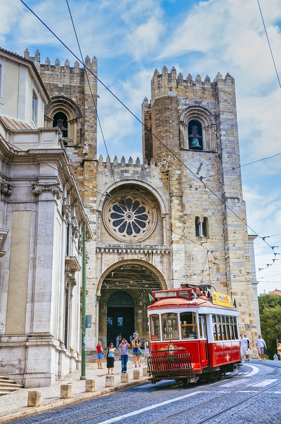 La ruta arranca en Alfama, el barrio que mejor conserva el espíritu de la Lisboa antigua. Entre calles estrechas, tranvías amarillos y ropa tendida, se alza la Sé de Lisboa, una catedral románica que parece más una fortaleza que un templo. Su fachada maciza, sus torres gemelas y su rosetón central recuerdan que, en tiempos medievales, la fe y la defensa iban de la mano.