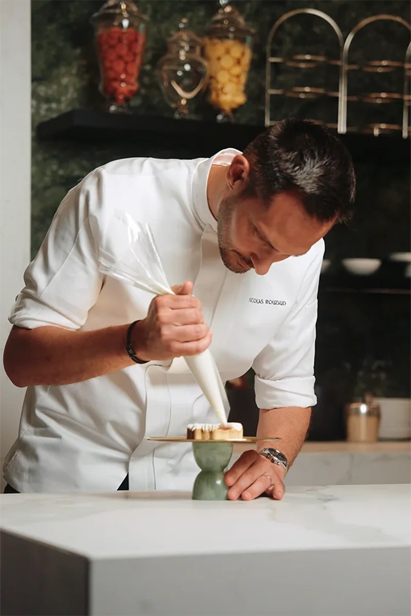 Dice Rouzaud que «la pastelería es una forma de arte, una que debe ser a la vez lujosa y profundamente arraigada en la artesanía». Y siguiendo esa máxima, el chef propone algunas de sus creaciones más icónicas, con especial protagonismo de sus célebres tartelettes: piezas delicadas, compuestas por fruta en su mejor momento, envueltas en una masa mantecosa y ligera que respira tradición, frescura y un toque de nostalgia.